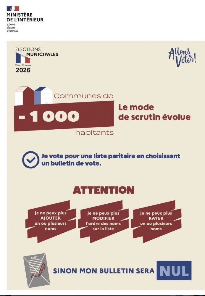 LES ELECTIONS MUNICIPALES AURONT LIEU LES 15 ET 22 MARS 2026.